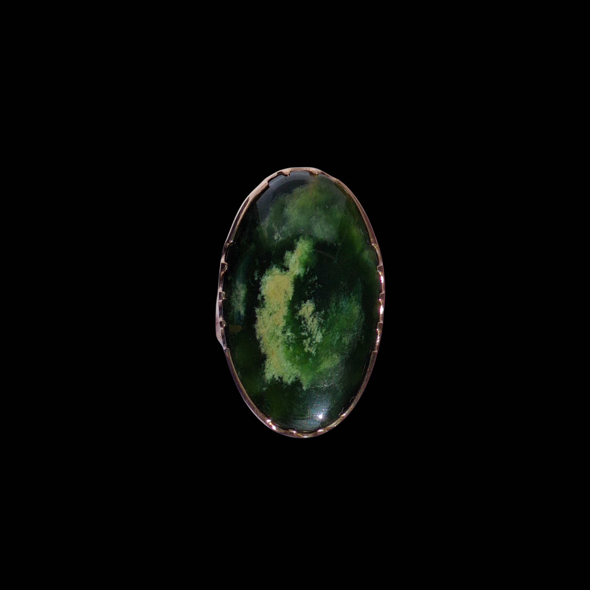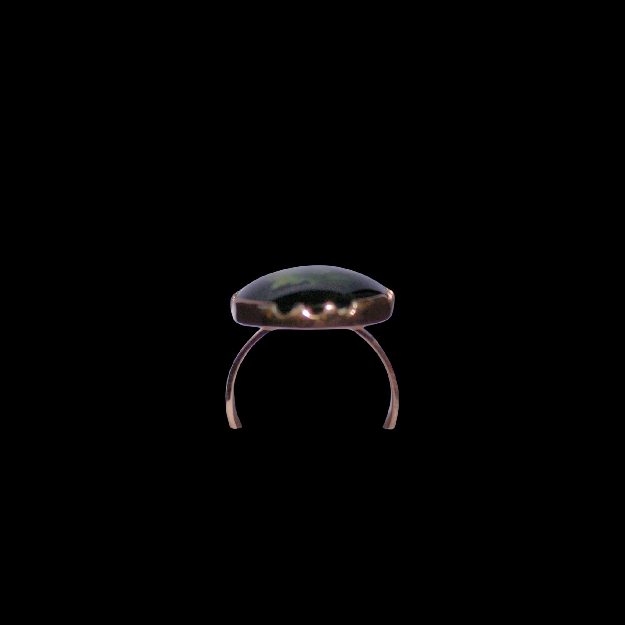 Set in 9 karat Gold, this gorgeous Gold black raukaraka Pounamu sourced from Marsden of Te Wai Pounamu, Aotearoa. Handcrafted in our studio, every ring is a one-off unique piece of jewellery. This piece was carved by Alex Sands and hand-crafted by John Mayo.
