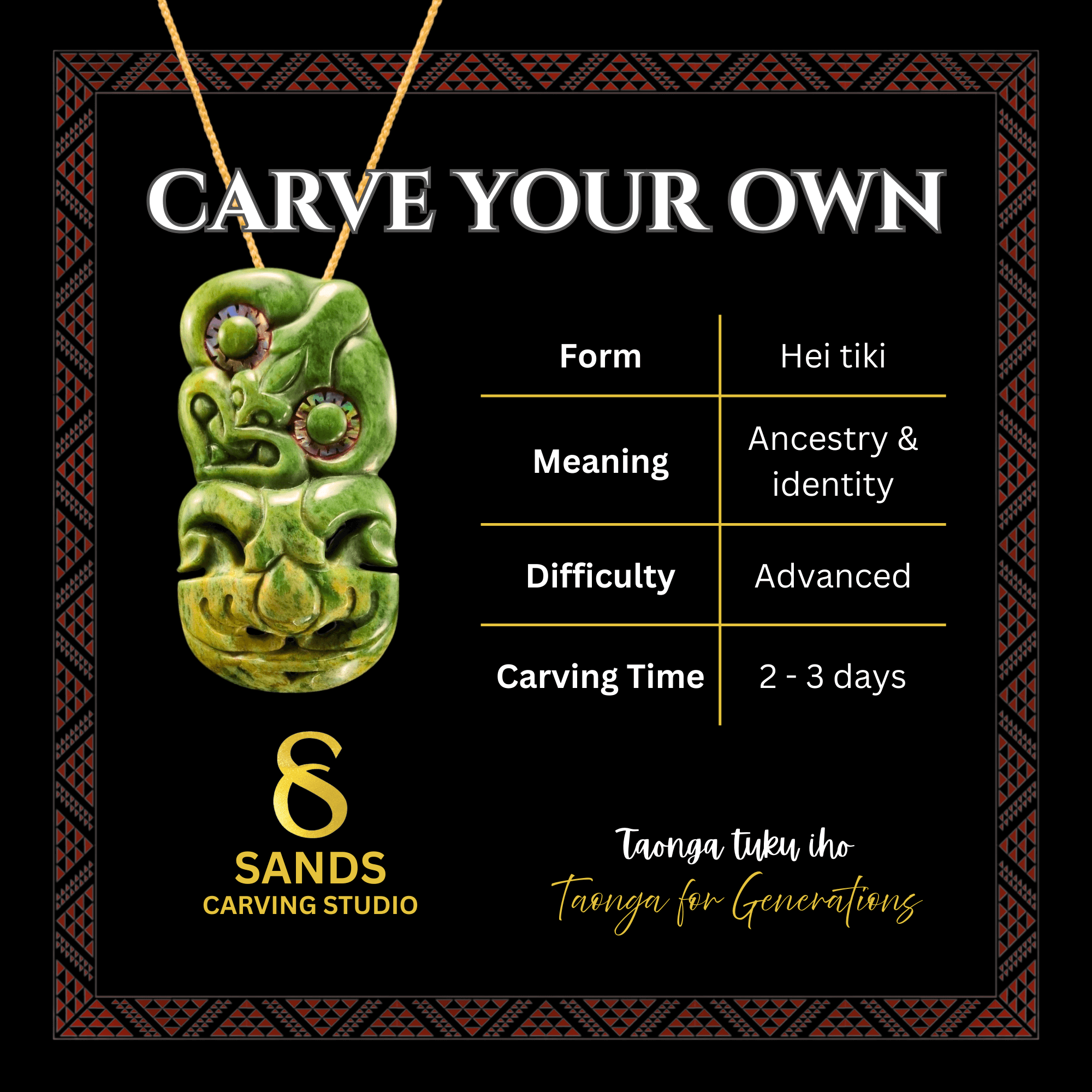Schedule an specialist level Carve Your Own pounamu workshop for a hei tiki. Create your own taonga (treasured object) with the guidance of our expert carvers, using authentic pounamu (New Zealand greenstone). You don’t need any experience - you’ll shape the stone yourself, step by step, with our support.
