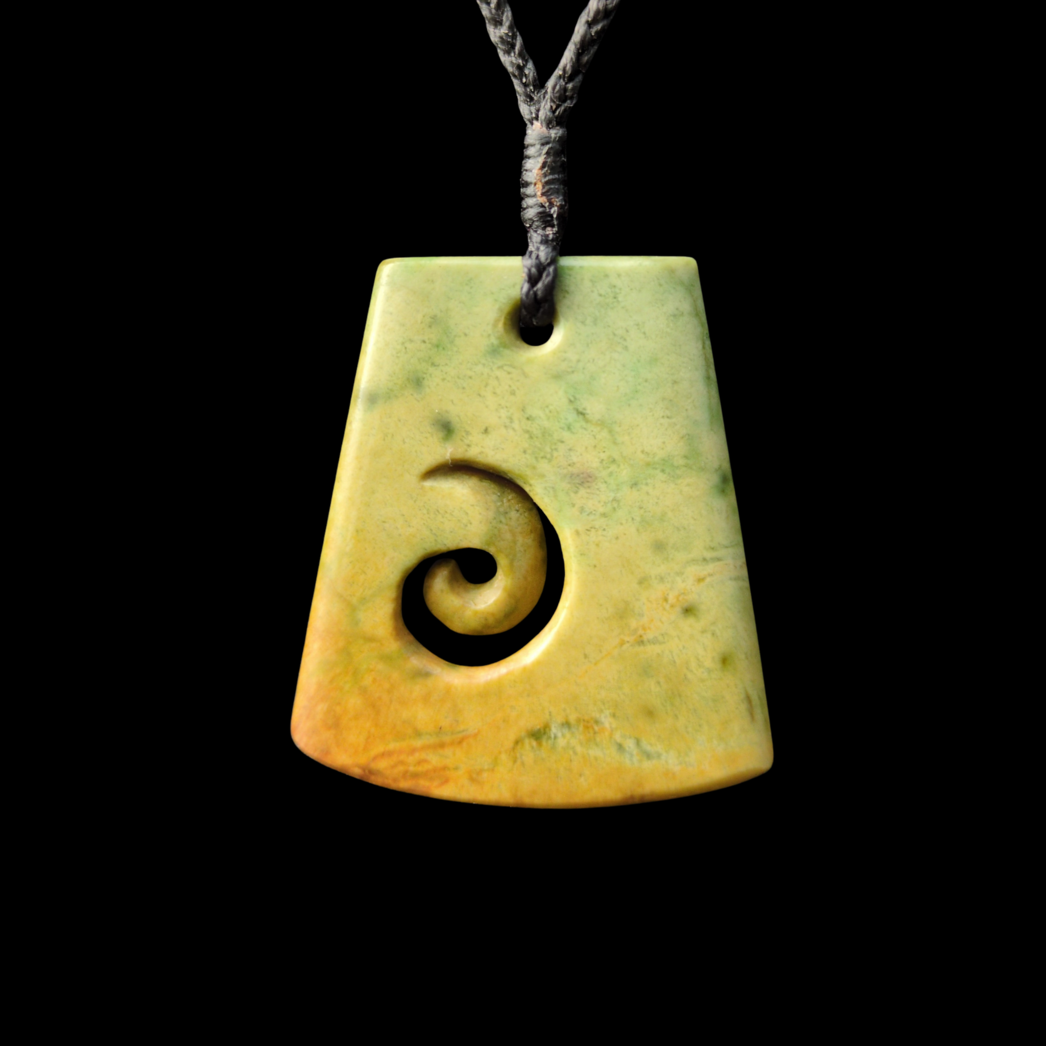 Hei Toki Koru Raukaraka - Greenstone Adze Spiral Pendant