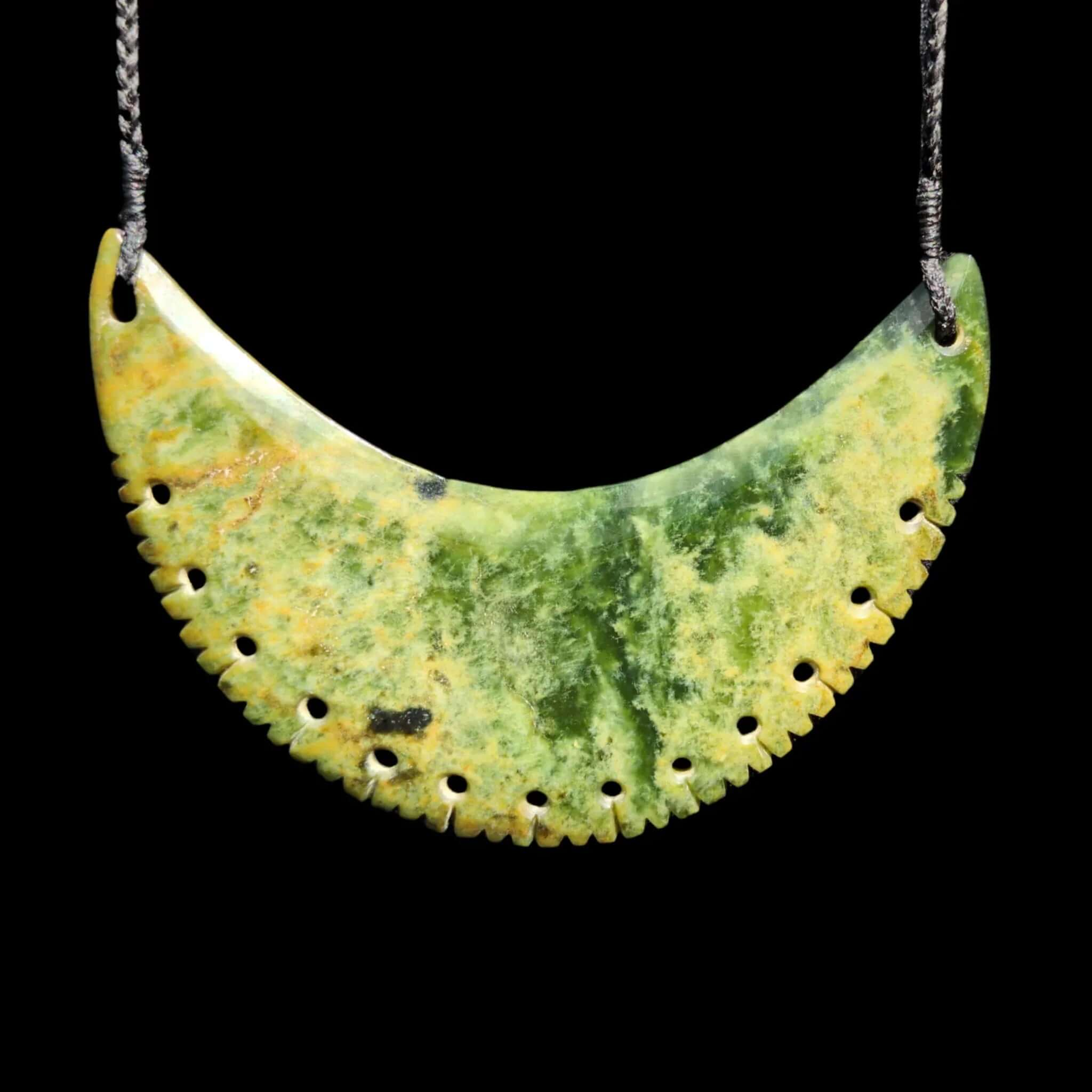 Kōuma Flower Jade Raukaraka - Greenstone Breastplate Pendant
